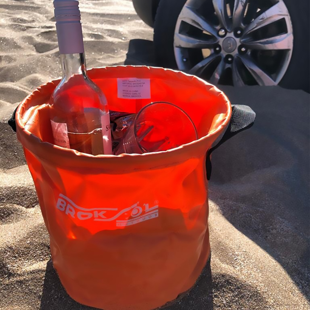 Balde estanco tela PVC impermeable con bordes reforzados y asas de tela para facilitar el transporte.