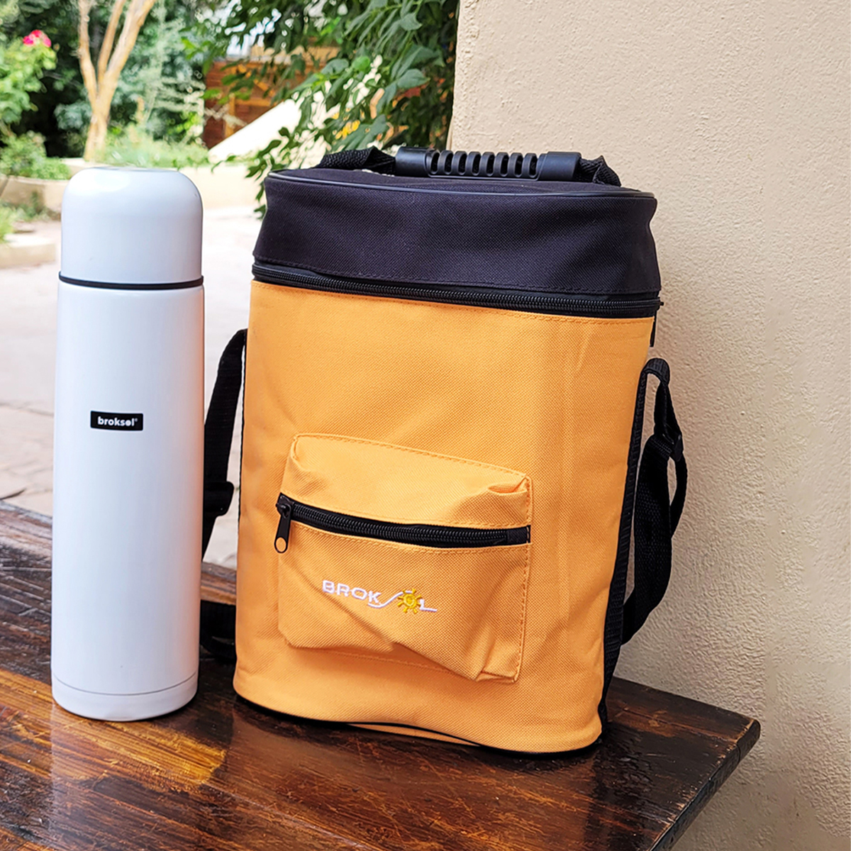 Con espacio suficiente para termos de hasta 1Lt, un mate, un equipo de yerba, azúcar, galletitas, y con un sujetador de bombilla.