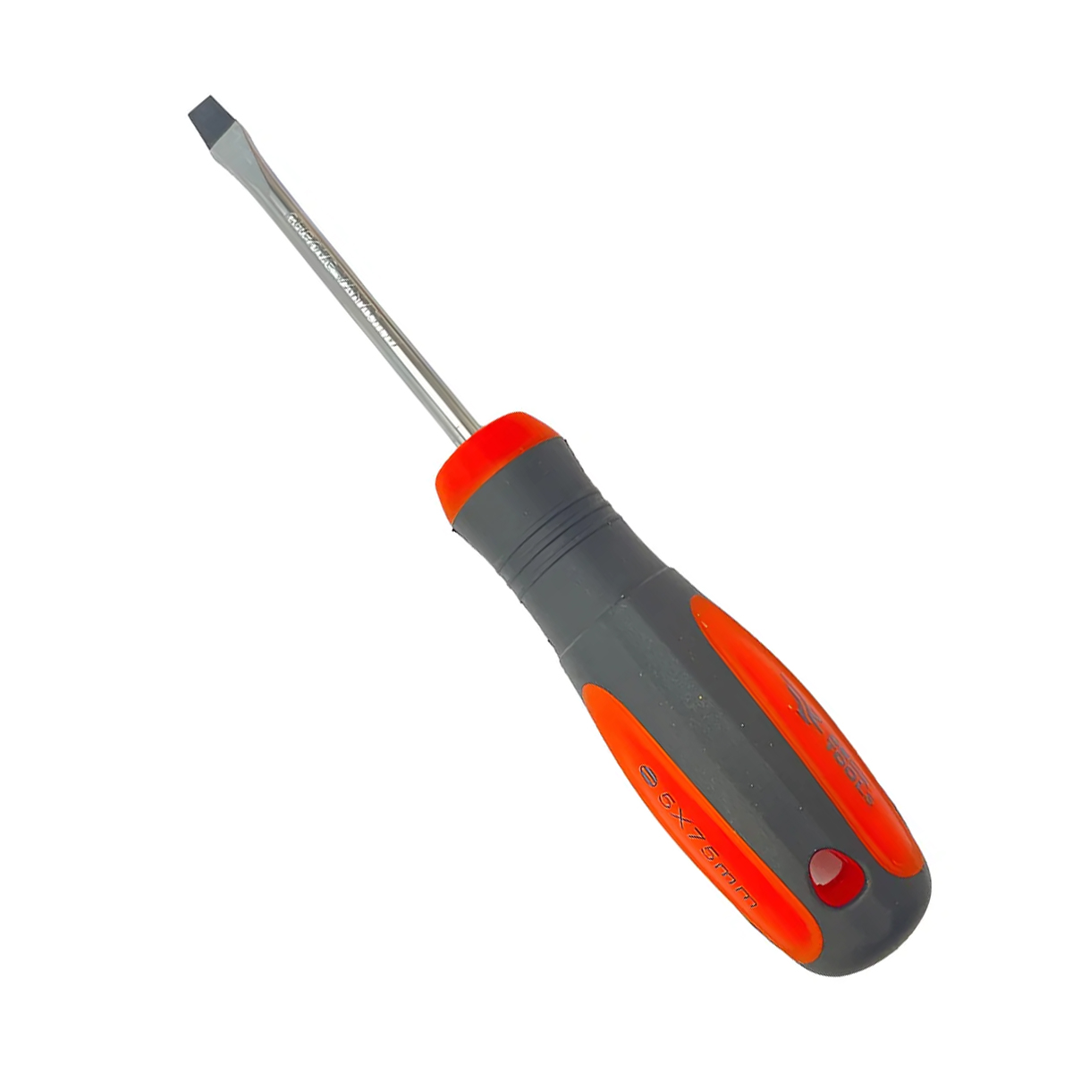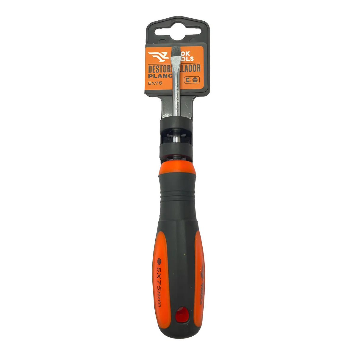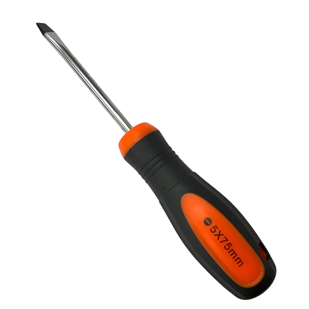 El Destornillador de Punta Plana Broktools 5×75 es ideal para trabajos de montaje, reparación y bricolaje, ofreciendo agarre firme y control total gracias a su mango ergonómico antideslizante. Diseñado para uso doméstico y profesional, combina resistencia y confort para un uso prolongado.