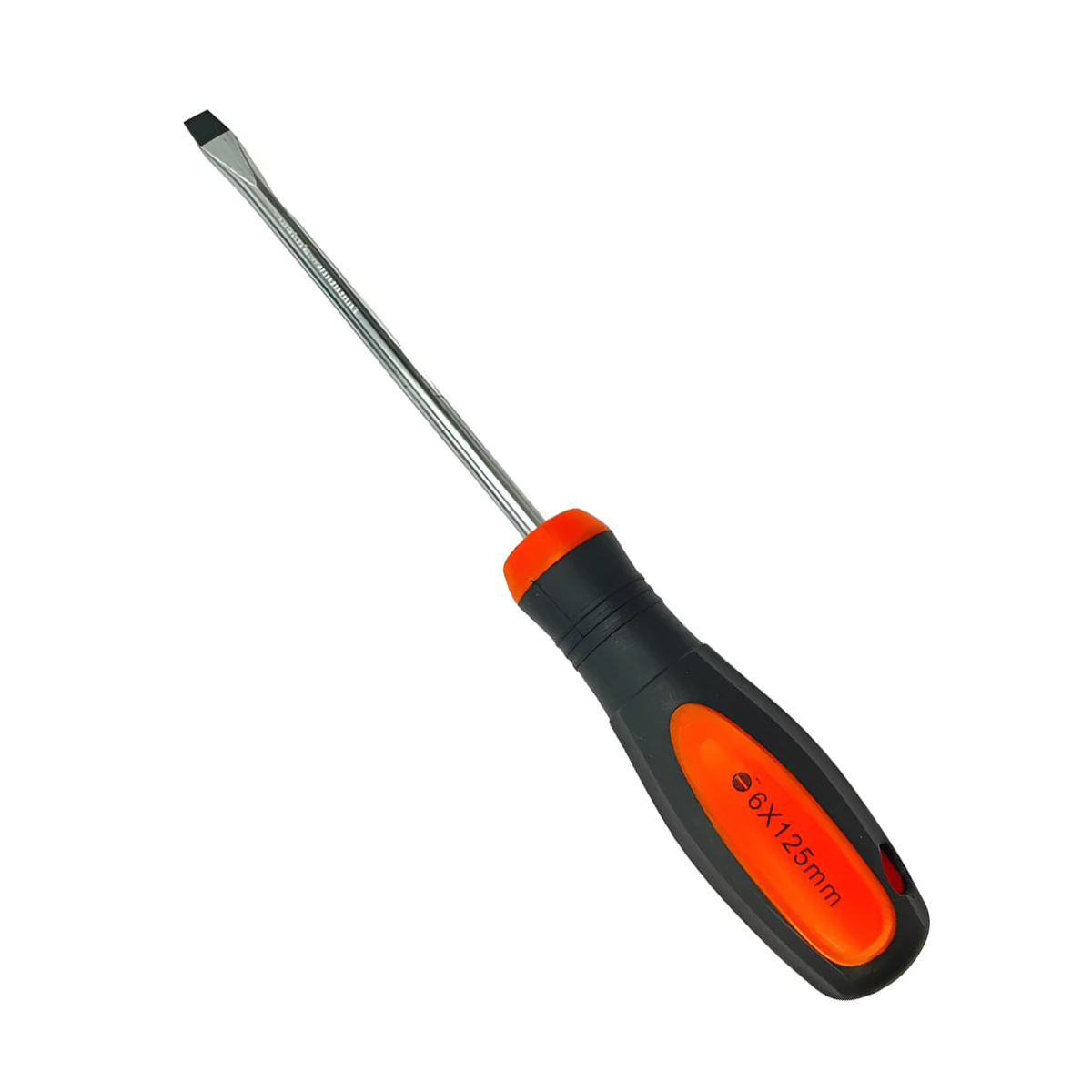 El Destornillador de Punta Plana Broktools 6×125 está diseñado para brindar potencia, control y comodidad en tareas de montaje, reparación y bricolaje. Su mango ergonómico antideslizante asegura un agarre firme, mientras que su cuerpo de acero de alta durabilidad soporta uso intensivo sin desgastarse.