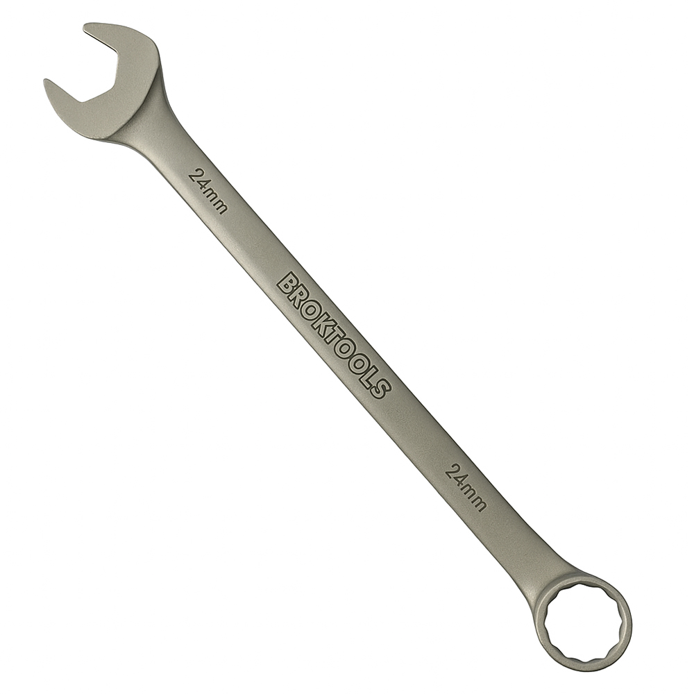 Llave combinada fija BROKTOOLS fabricada en acero Cromo-Vanadio, ideal para trabajos profesionales y domésticos. Incluye boca fija y estrella de 12 puntas para un agarre seguro y preciso. Gran resistencia y durabilidad para un uso confiable en cualquier entorno.