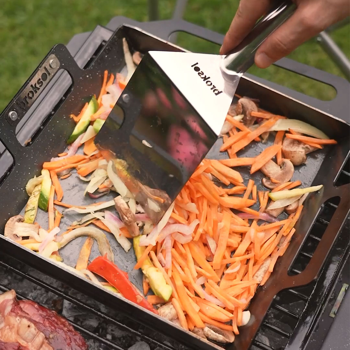 Es el ayudante ideal para todas las recetas que quieras de forma profesional, como bifes, hamburguesas, papas rústicas, huevos, verduras, arrollados de queso, brochettes, carnes blancas, etc., y transferir los sabores intensos de un alimento a otro en una misma cocción.