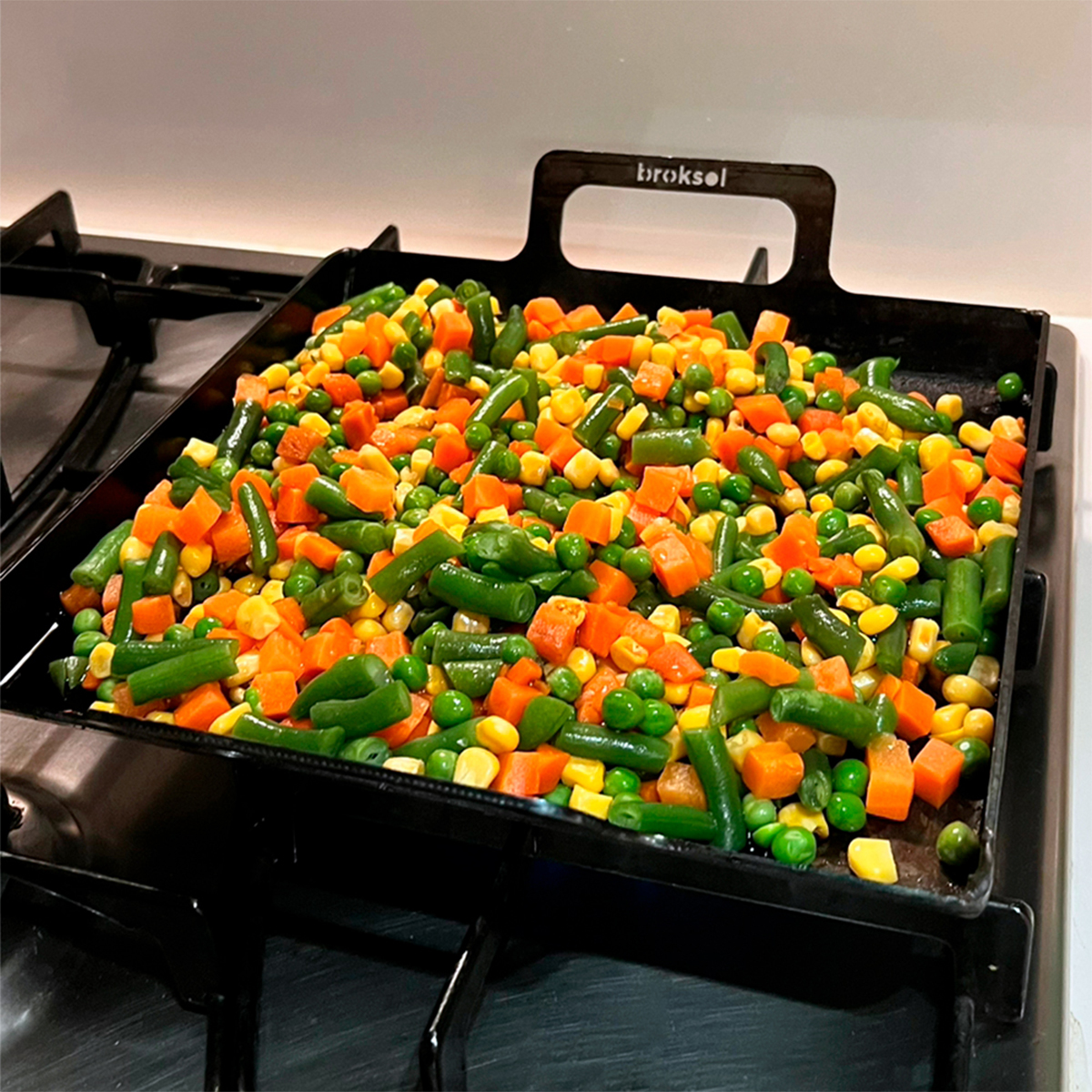 Optimiza la distribución del calor logrando una cocción pareja y un sellado crocante. Es una pieza fundamental en la cocina de todos los días y se complementa perfectamente con la Tapa Universal Broksol!